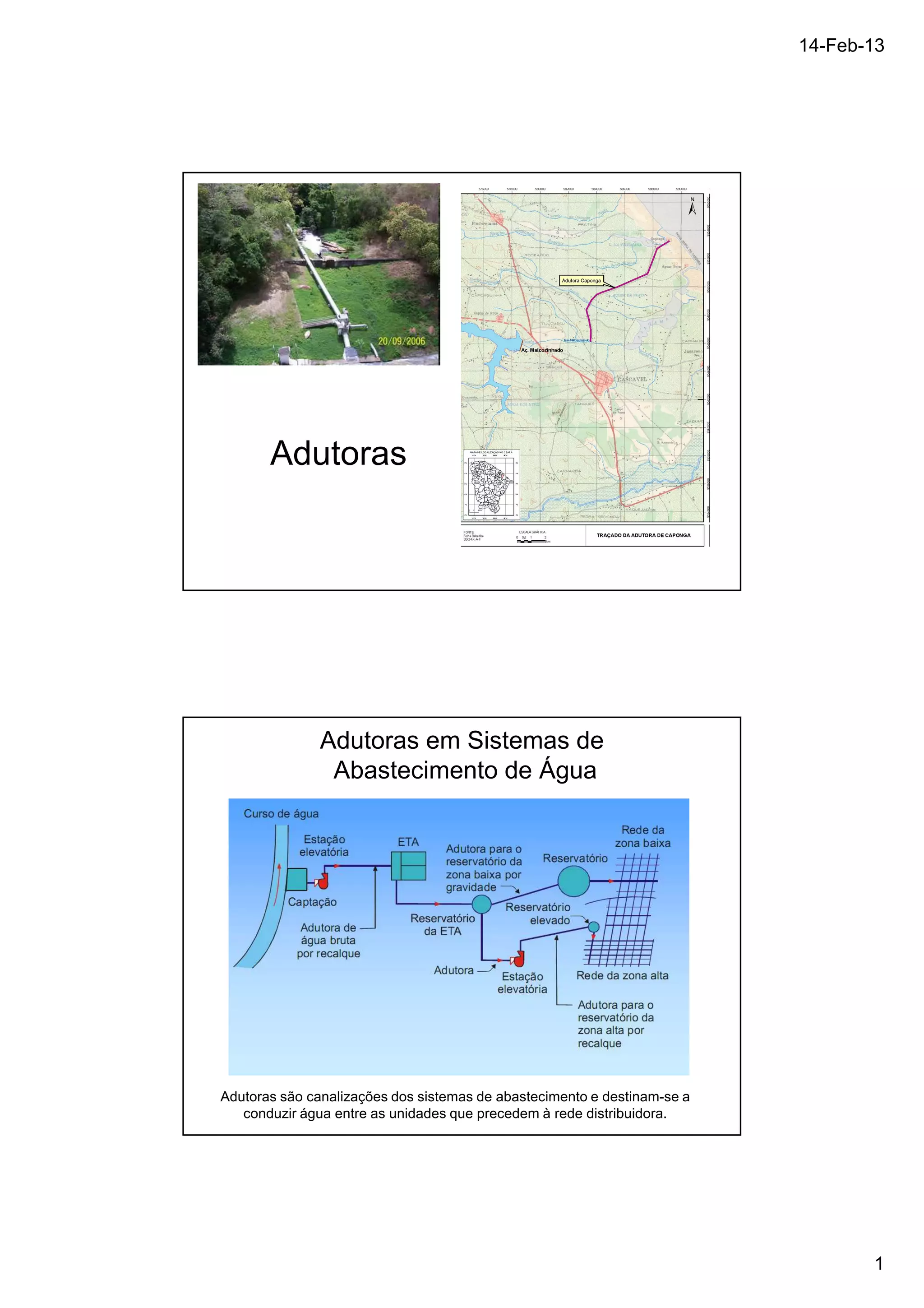 Adutoras são canalizações dos sistemas de abastecimento e destinam-se a