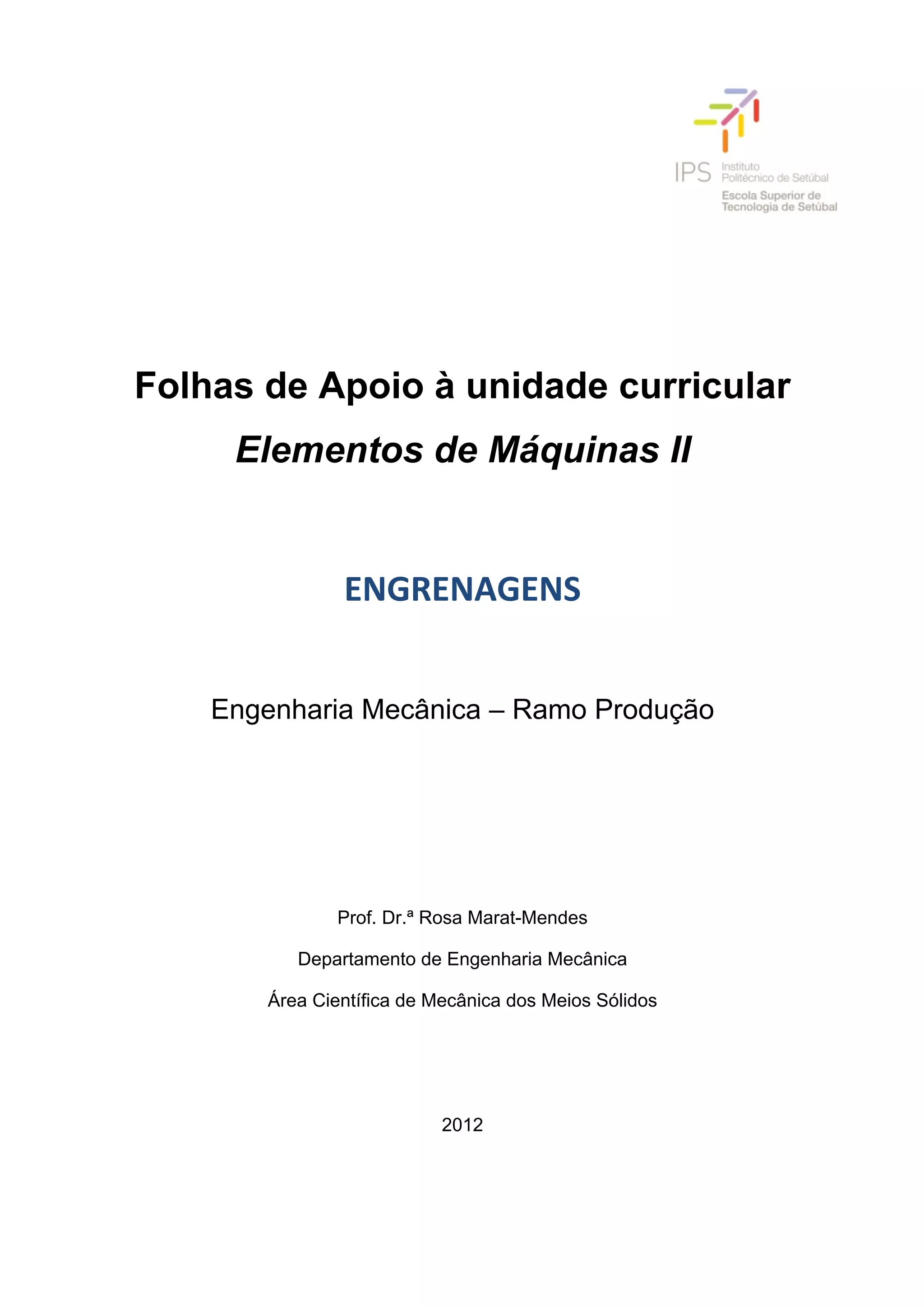 Este documento discute engrenagens e transmissões rígidas. Descreve os principais tipos de engrenagens como cilíndricas, cónicas e de parafuso sem fim. Detalha aspectos como fabrico, nomenclatura, geometria, relações de transmissão, análise de forças e cálculo de engrenagens cilíndricas. Apresenta exemplos de aplicações em máquinas e veículos.
