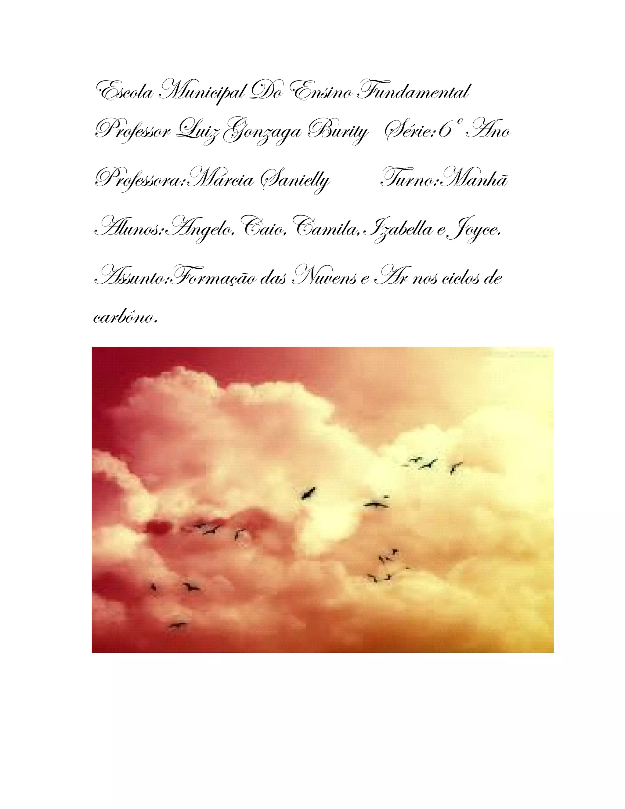A professora Márcia Sanielly ensinou sobre a formação das nuvens e o ciclo do carbono para os alunos Angelo, Caio, Camila, Izabella e Joyce da 6a série da Escola Municipal do Ensino Fundamental Professor Luiz Gonzaga durante a aula da manhã.