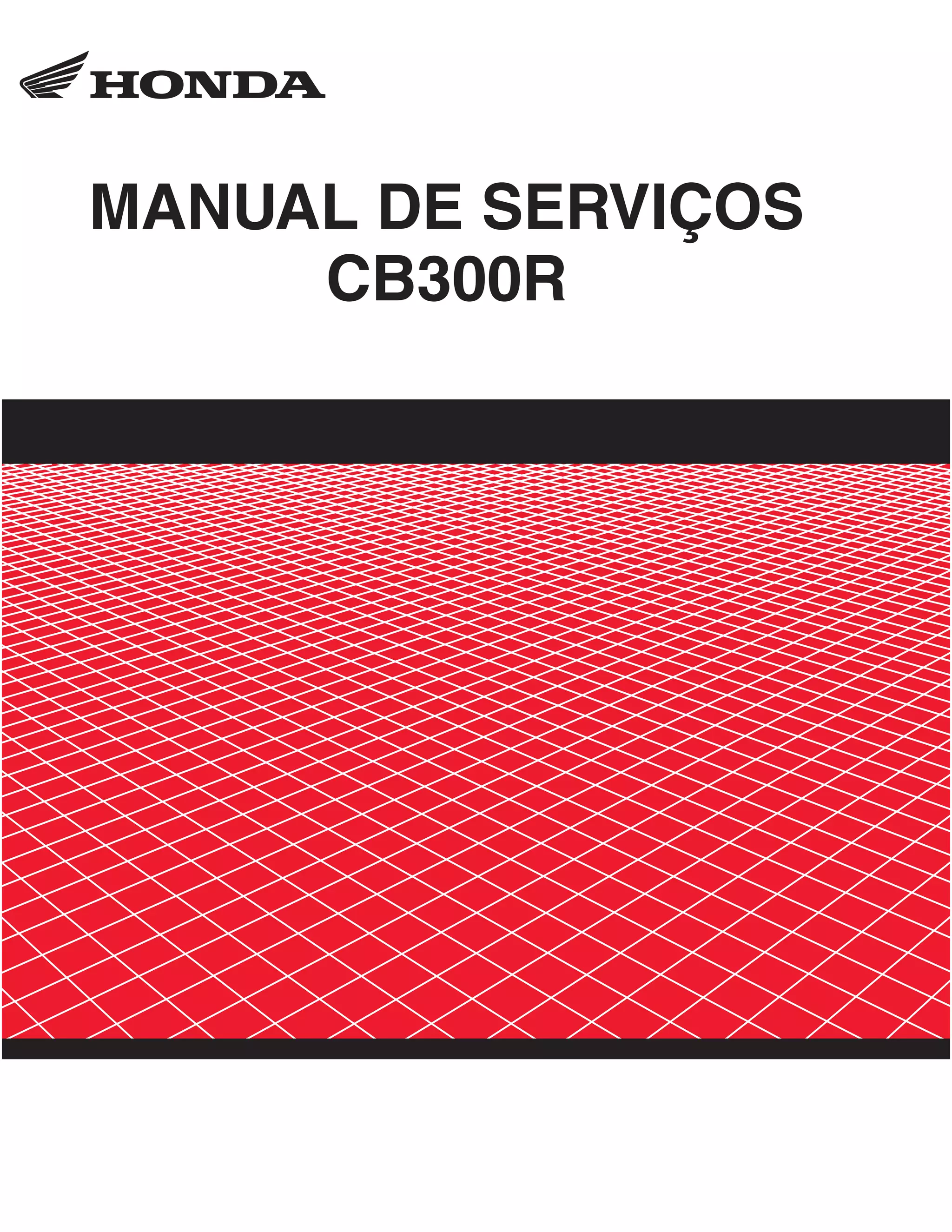 Este manual fornece instruções sobre serviços para a motocicleta Honda CB300R, incluindo especificações técnicas, procedimentos de manutenção e solução de problemas.