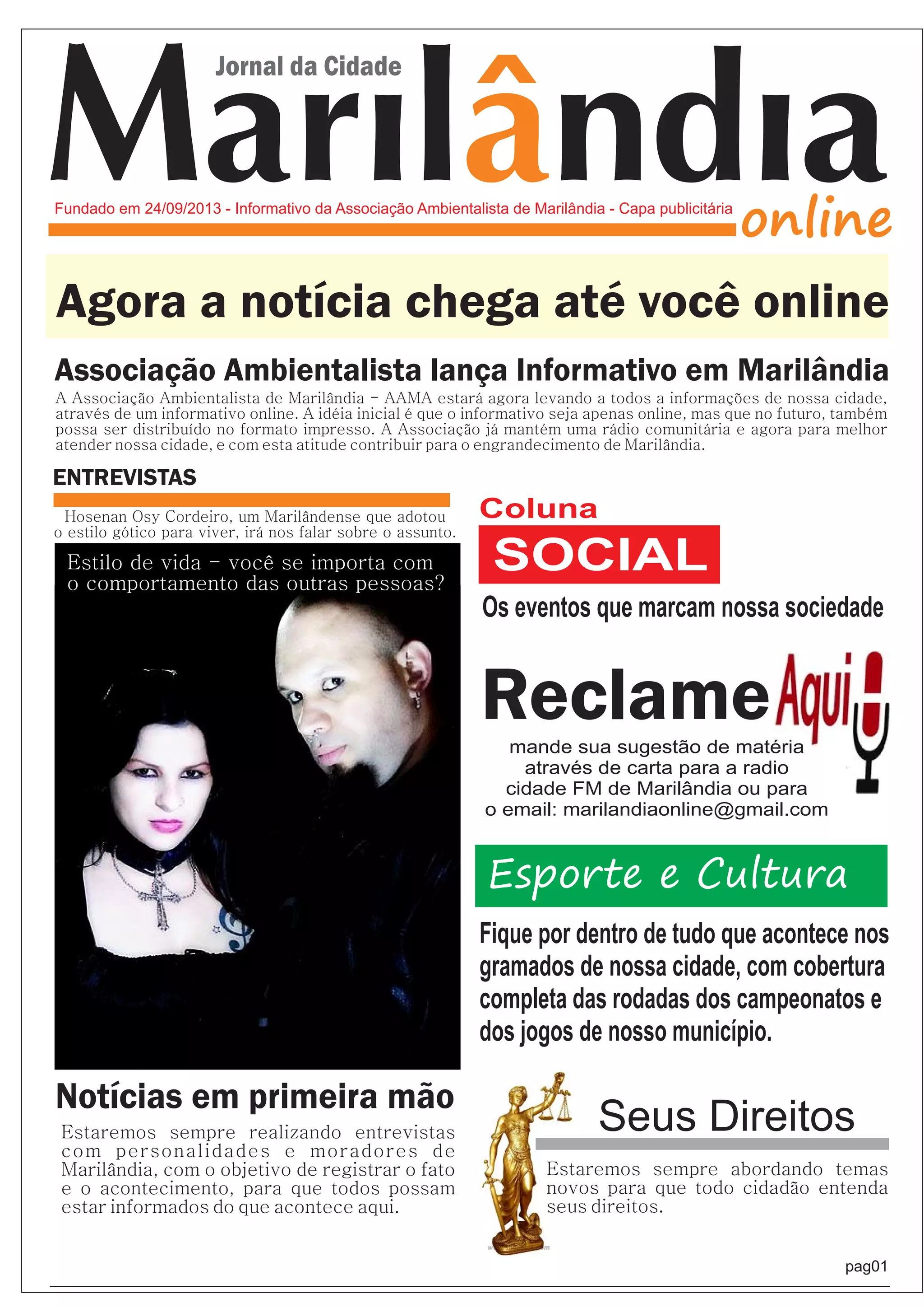 O documento resume o lançamento de um novo informativo online pela Associação Ambientalista de Marilândia para fornecer notícias e informações sobre eventos na cidade. O informativo incluirá entrevistas, cobertura de esportes, colunas sobre estilo de vida e direitos dos cidadãos. A associação espera que o informativo online possa eventualmente ser distribuído também em formato impresso.