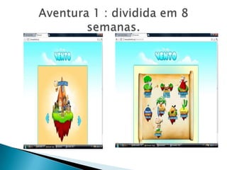O documento descreve atividades de alfabetização para a primeira semana do 1o ano do ensino fundamental. As atividades estão inseridas em uma narrativa sobre dois personagens que são transportados para uma floresta mágica. As competências envolvidas incluem reconhecimento de letras, sons, palavras e números.