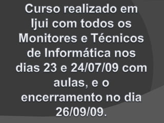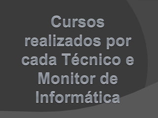 O documento lista os cursos de formação realizados por diferentes técnicas em informática de escolas de Santa Maria sobre o uso de tecnologias digitais na educação, incluindo cursos sobre ferramentas como Excel, PowerPoint, Movie Maker, blogs, redes de computadores e inclusão digital.