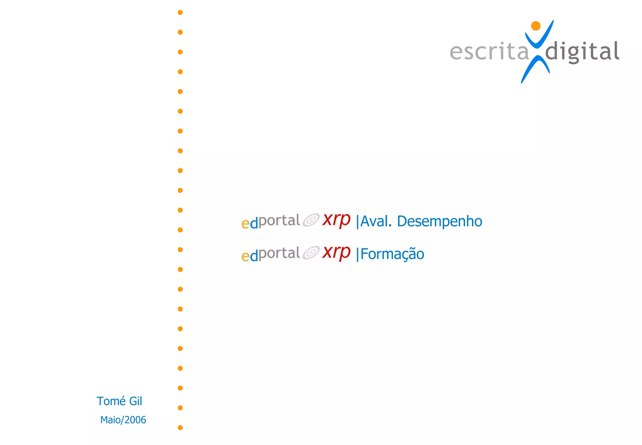 1) O documento discute o software ED-Portal da Escrita Digital para avaliação de desempenho e gestão de formação.