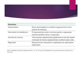O documento aborda as múltiplas dimensões do comportamento organizacional, enfatizando a importância de habilidades interpessoais para gestores e apresentando suas funções e papéis. Explora como a administração é influenciada por diversas disciplinas, e discute os desafios atuais, como a diversidade e a necessidade de adaptação à globalização. Também destaca a importância da administração baseada em evidências para decisões gerenciais mais eficazes.