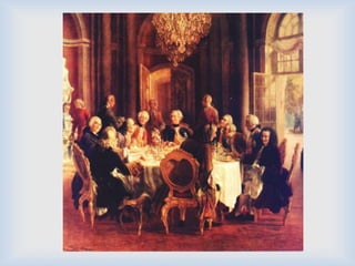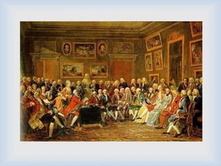 O documento resume os principais filósofos, economistas e obras do Iluminismo nos séculos XVII e XVIII na Inglaterra, França e outros países europeus. Aborda pensadores como Descartes, Newton, Locke, Montesquieu, Voltaire e Rousseau, além de economistas como Quesnay, Turgot, Smith e a Enciclopédia. Também discute a música do período e as transformações moderadas e radicais promovidas pelo Iluminismo.