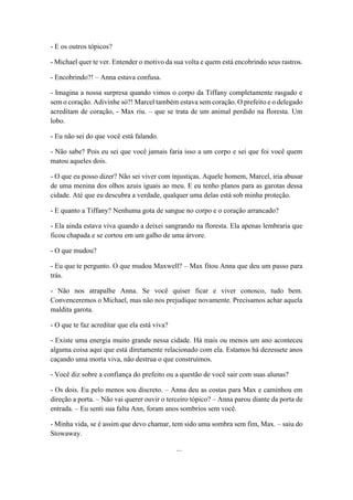 O capítulo descreve uma conversa tensa entre Anna e Max em um bar vazio. Max acusa Anna de matar Tiffany e Marcel, mas Anna nega. Ele diz que Michael quer vê-la. O capítulo também mostra Louise tendo alucinações e procurando respostas em livros, enquanto as pessoas falam sobre seu comportamento estranho.