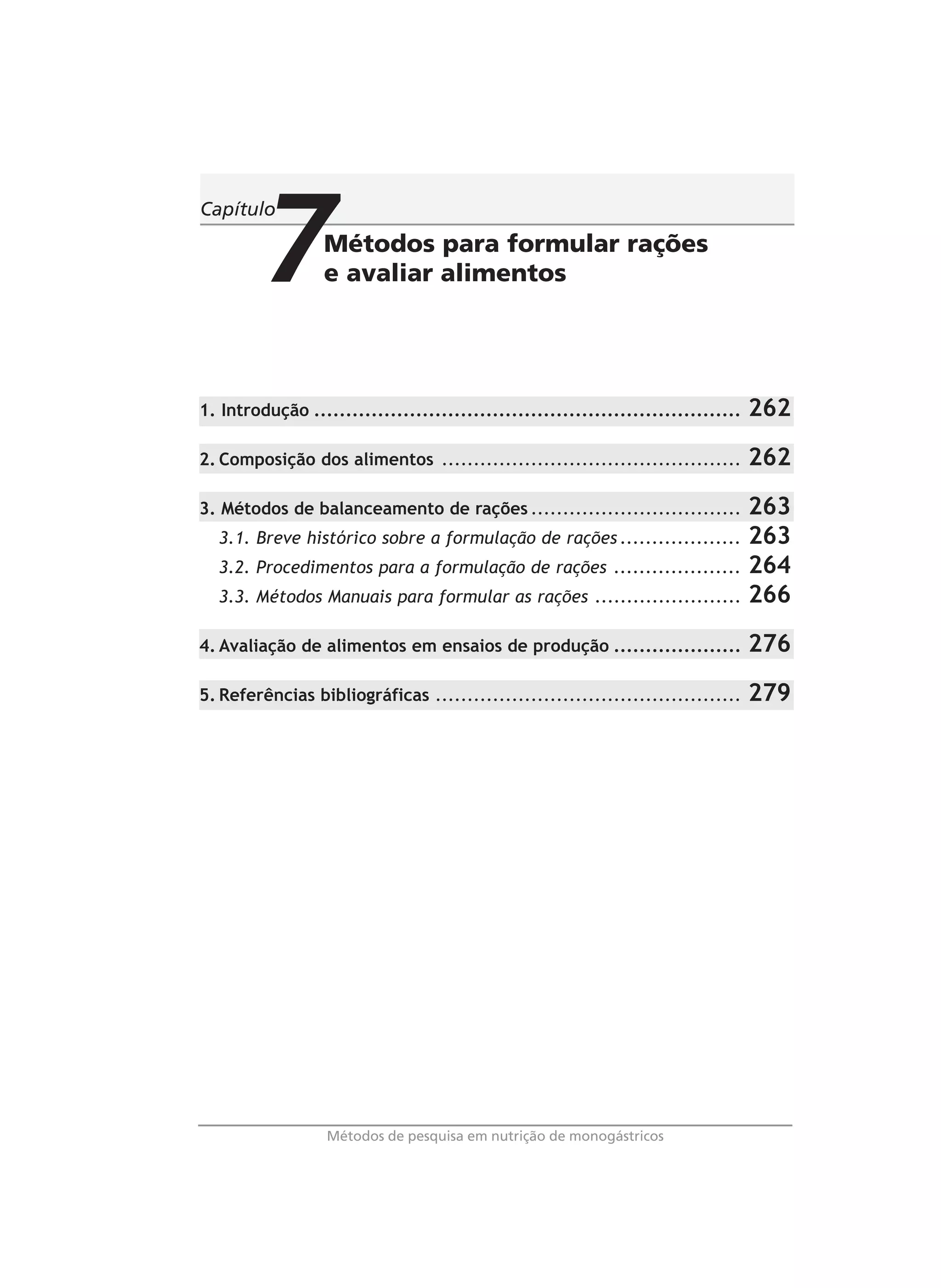 Este capítulo descreve métodos para formular rações e avaliar alimentos para monogástricos. Apresenta breve histórico sobre formulação de rações, procedimentos para balanceamento, e métodos manuais como o da tentativa, ilustrado com exemplo de ração para frangos de corte.
