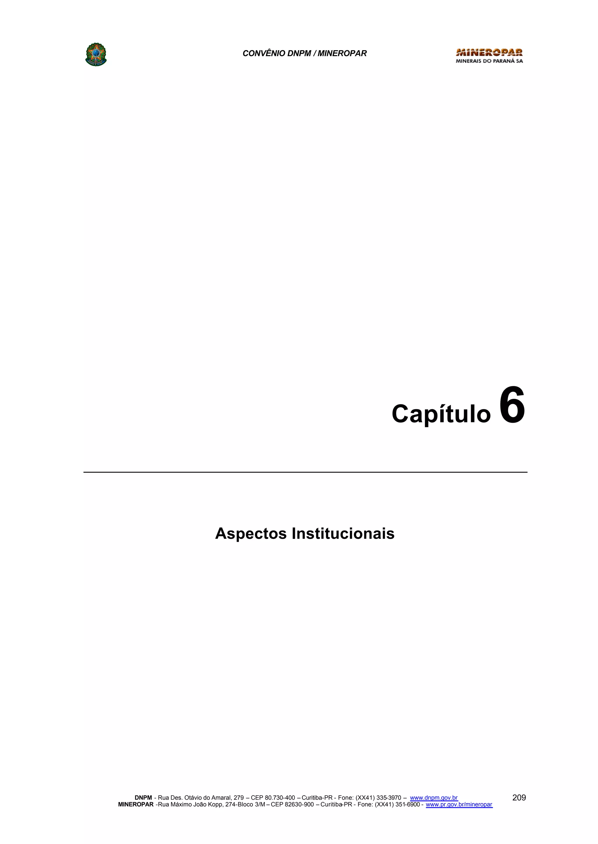 O documento descreve as principais instituições públicas envolvidas na regulação da mineração no Brasil e no Paraná, incluindo o DNPM, IBAMA, CONAMA, secretarias estaduais e municipais. Também apresenta a legislação que rege a atividade mineral no país, com destaque para o Código de Mineração e Código das Águas.