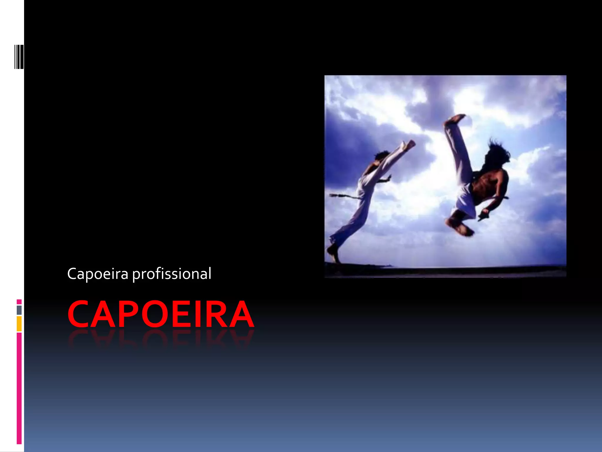 A capoeira surgiu no Brasil como uma forma de resistência dos escravos, disfarçando lutas de defesa e ataque em danças. Ela usa principalmente os pés e a cabeça, enquanto as mãos são menos usadas. A capoeira tem alguns golpes básicos, mas que podem se tornar complexos através de variações, assim como a música tem poucas notas. Sua prática é sempre acompanhada por instrumentos musicais.