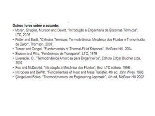 Este documento apresenta o plano de aula para o curso EM 524 na Universidade de Campinas. Ele inclui informações sobre o professor, livro texto, cronograma de provas, objetivos do curso e tópicos a serem abordados como termodinâmica, transferência de calor e massa e aplicações em engenharia.