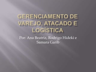 O documento discute o varejo e atacado, logística de mercado e fornece respostas sobre os fatores-chave de sucesso do Walmart, pontos vulneráveis e recomendações de marketing.