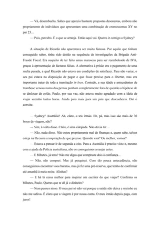 Rodolfo aceita a proposta de Paulo para viajar com ele para Sydney, Austrália para ajudar o irmão de Paulo. Eles viajarão de Lisboa para Londres e depois para Sydney, com uma viagem total de cerca de 33 horas. Rodolfo faz preparativos para a viagem, incluindo trocar dinheiro para dólares australianos e aprender sobre conduzir na Austrália pela esquerda.