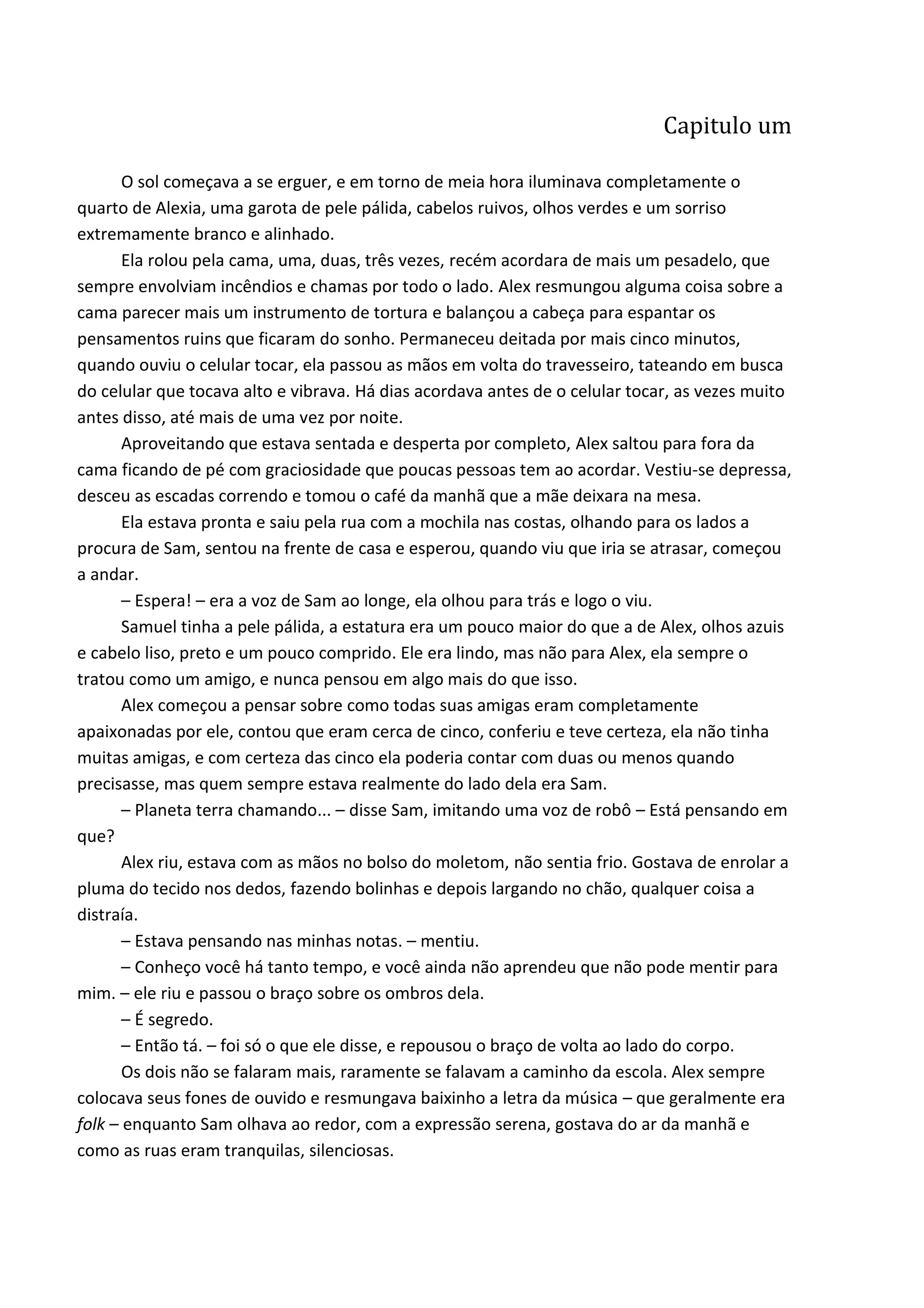 1) Alexia tem pesadelos recorrentes e uma cicatriz estranha no braço. Um estranho chamado Sebastian aborda ela na escola e parece saber detalhes sobre sua vida.