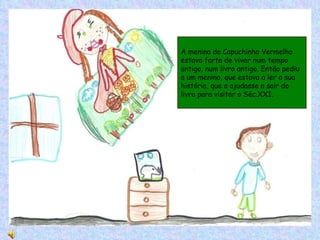 Uma menina do conto Capuchinho Vermelho sai do seu livro com a ajuda de um menino chamado João para visitar o século XXI. Ela fica maravilhada com as novidades como carros e supermercados, mas sente falta das florestas. Durante uma viagem à história dela, os dois amigos ajudam uma mãe ursa presa e aprendem mais sobre a natureza.