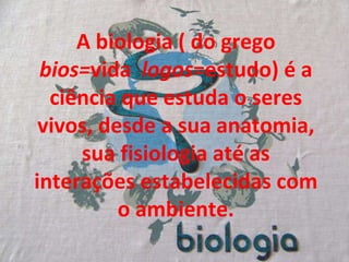 O documento discute os principais conceitos da biologia, incluindo a organização celular dos seres vivos, sua composição química, metabolismo, crescimento, reprodução, hereditariedade, adaptação ao meio ambiente, evolução e tempo de vida das células.