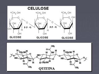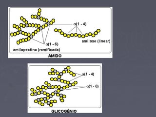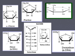 O documento discute carboidratos, classificando-os em monossacarídeos, dissacarídeos e polissacarídeos. Monossacarídeos como a glicose são fundamentais para a produção de energia, enquanto polissacarídeos como a celulose têm função estrutural. A sacarose é um dissacarídeo formado por glicose e frutose encontrado na cana-de-açúcar.