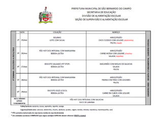 Cardápio da EMEB José Cataldi - dezembro.