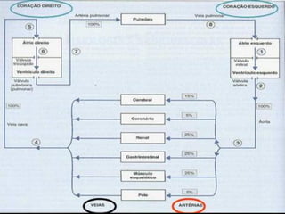 O documento descreve a anatomia, fisiologia e patologias do sistema cardiovascular, incluindo as estruturas do coração e vasos sanguíneos, além de condições como insuficiência cardíaca e suas causas. É apresentada a resposta do miocárdio à agressão, mecanismos compensatórios e padrões de lesões associados.