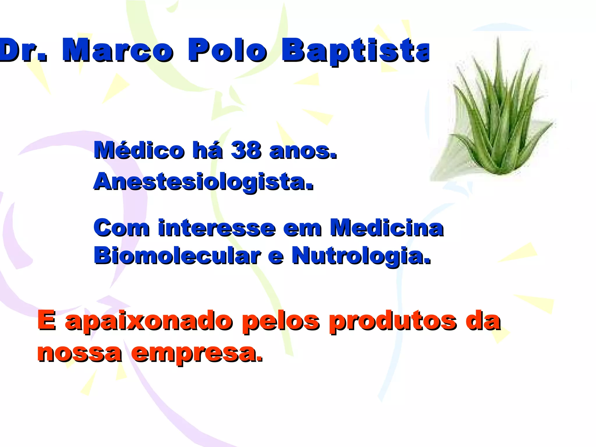 O Dr. Marco Polo Baptista, anestesiologista com 38 anos de experiência e interesse em medicina biomolecular, discute a importância dos alimentos funcionais na saúde cardiovascular e suas definições pela ANVISA. O documento detalha as funções do endotélio e os efeitos benéficos de substâncias como aloe vera, alho e ômega 3 para a prevenção de doenças cardíacas. Suplementos alimentares são apresentados como estratégias para desintoxicar, proteger e nutrir o sistema cardiovascular.