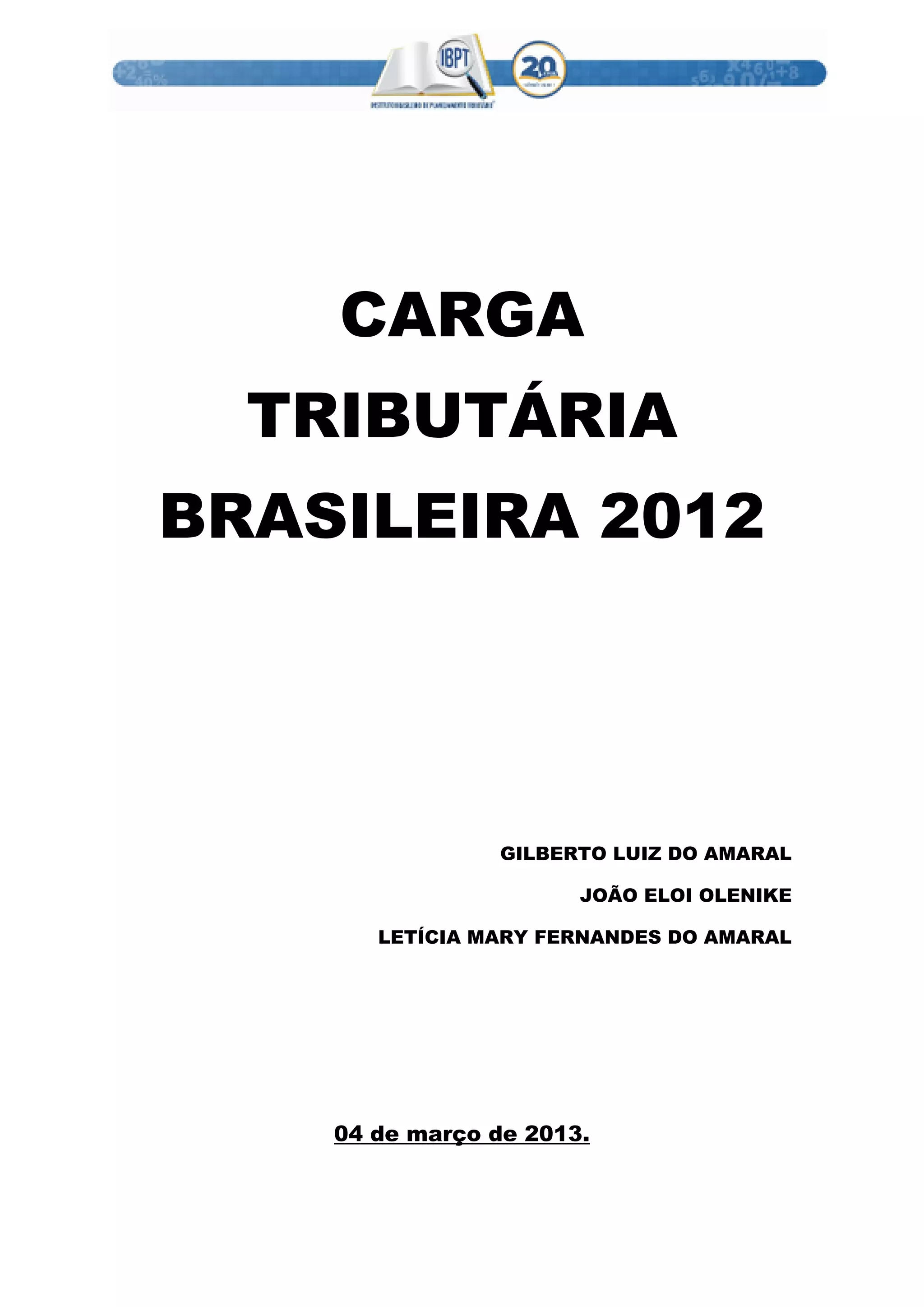 A carga tributária brasileira atingiu um novo recorde em 2012 de 36,27% do PIB, um aumento de 0,25 pontos percentuais em relação a 2011. A arrecadação tributária cresceu R$ 104,87 bilhões em 2012, totalizando R$ 1,59 trilhão. Os tributos federais responderam por 69,96% da arrecadação total.