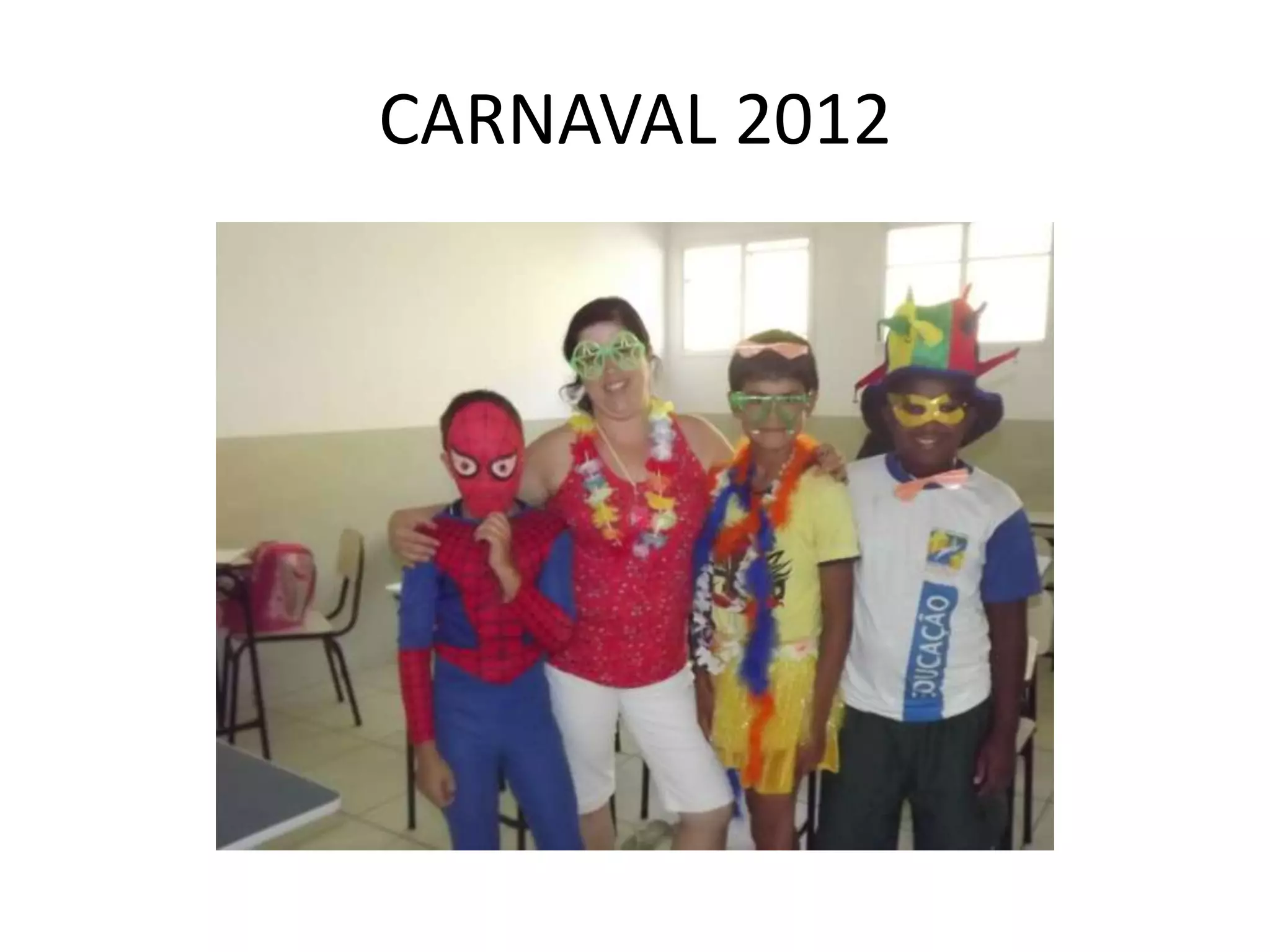 O documento lista os blocos e atividades do carnaval de 2012, incluindo o bloco Homem-aranha em seu 5o ano, o bloco do Pijama em seu 6o ano, um desfile de professoras, o bloco Linda! Bailarina em seu 1o ano, vários desfiles na rua, diversão, bailes na quadra, criatividade, amigos do pijama e descontração.