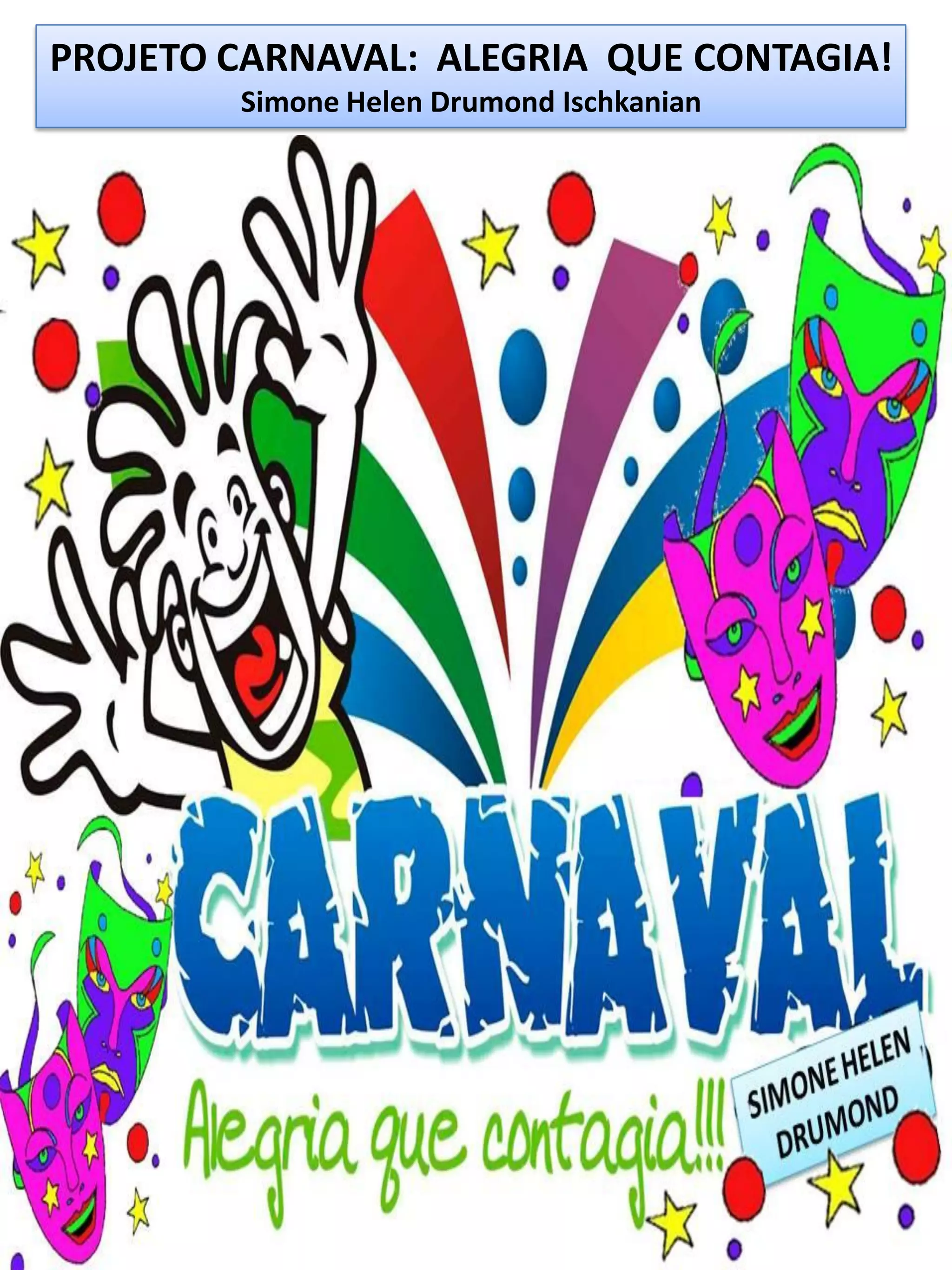O documento descreve um projeto sobre o Carnaval brasileiro para crianças. O projeto tem como objetivo ensinar sobre as origens e influências do Carnaval, incluindo marchinhas, fantasias e blocos carnavalescos. As atividades incluem a confecção de máscaras, pintura facial, desfile de fantasias e aprendizagem de músicas carnavalescas.