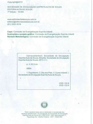 O livro Carnaval pertence a uma coleção de livros infantis entitulada "Aulas Especiais" podendo ser utilizado na Escola de Evangelização Espírita Infantil bem como no culto do evangelho no lar, trazendo à criança as orientações preciosas do espiritismo.