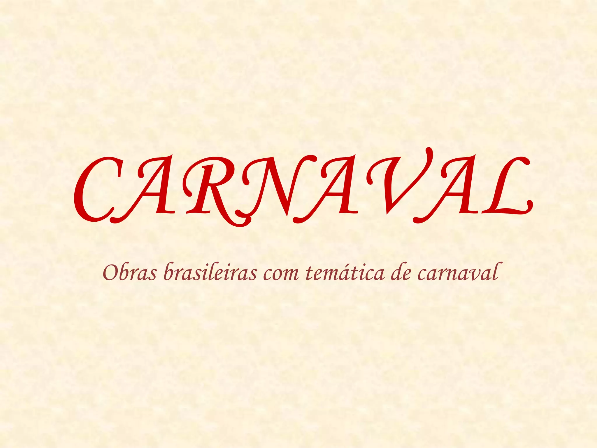 O documento lista obras de arte brasileiras com temas relacionados ao carnaval, incluindo pinturas a óleo de artistas como Arthur Timótheo da Costa, Antonio Maria Nardi, Rodolfo Chambelland e Tarsila do Amaral, retratando cenas de festas de carnaval e fantasias.