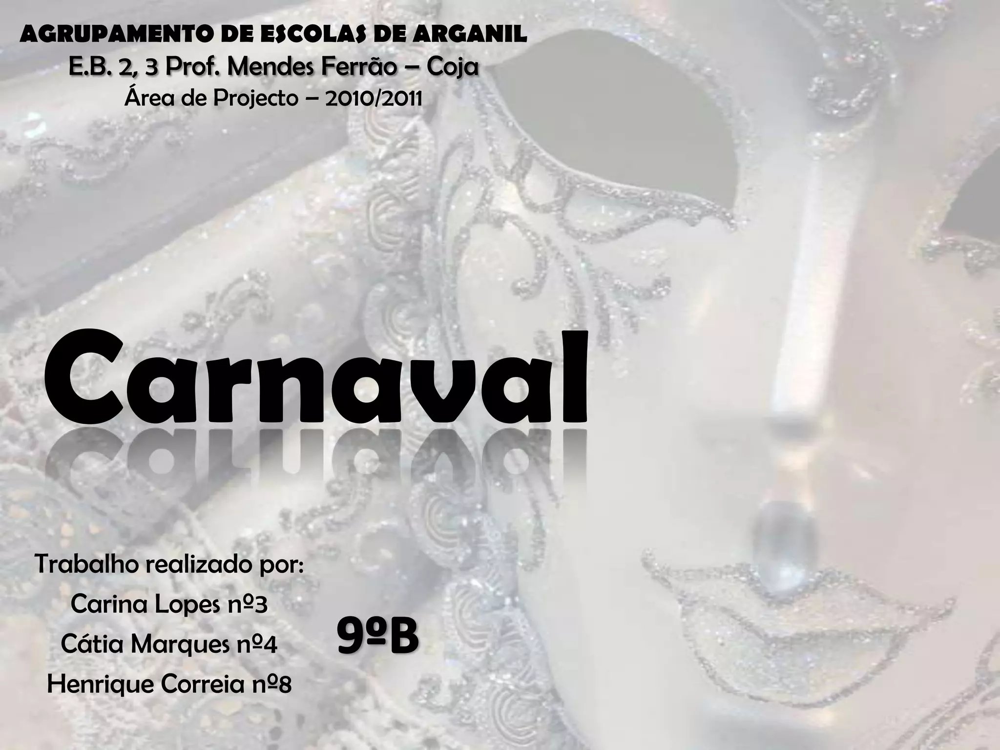 O documento descreve as tradições do Carnaval em diferentes locais. Fala sobre o Carnaval Carioca no Brasil, o Carnaval Europeu e o Carnaval de Coja em Portugal, que é celebrado durante três dias com bailes, desfiles e o "enterro do entrudo" no final.
