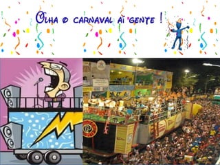 O documento descreve a origem e tradições do Carnaval no Brasil e no mundo, incluindo curiosidades como a origem da palavra Carnaval, costumes antigos, blocos e festas famosas em diferentes cidades e países.