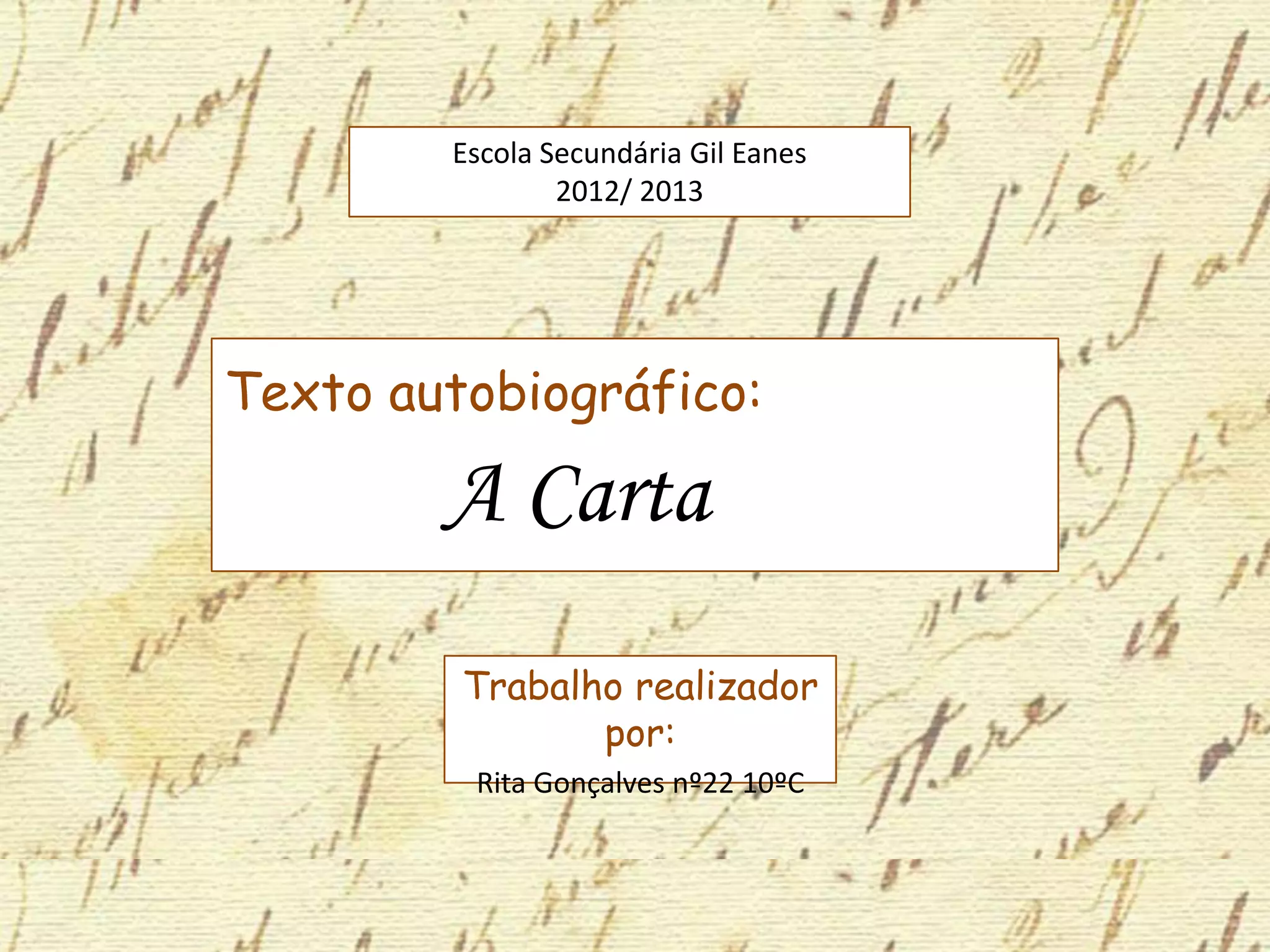O texto evidenciado no slide anterior é uma carta