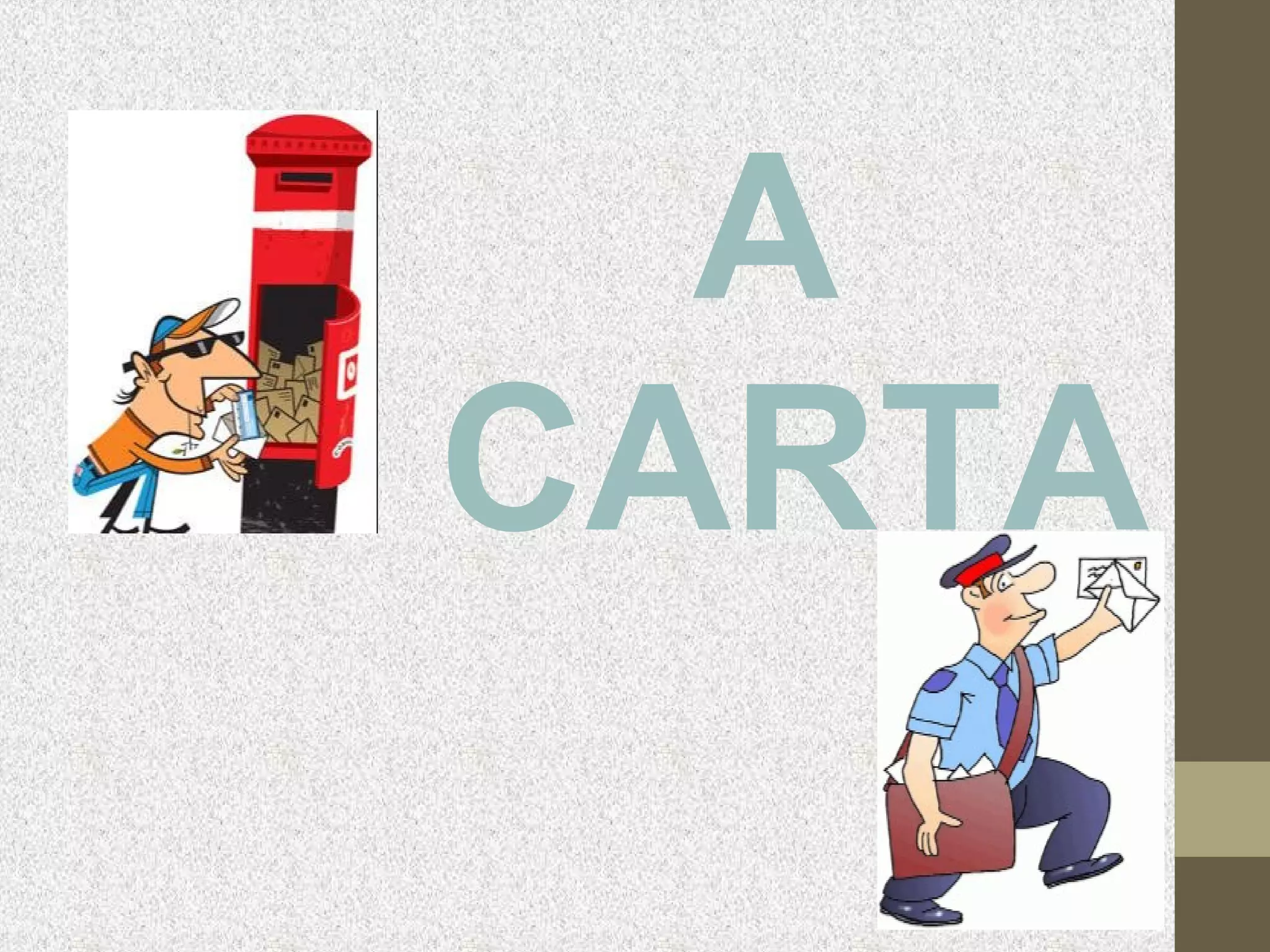 Uma carta é um instrumento de comunicação entre um remetente e um destinatário através do papel. Uma carta permite comunicar notícias, cumprimentos, pedidos ou reclamações com alguém ausente. Existem cartas formais como cartas oficiais ou comerciais e cartas informais como cartas familiares ou de amor.