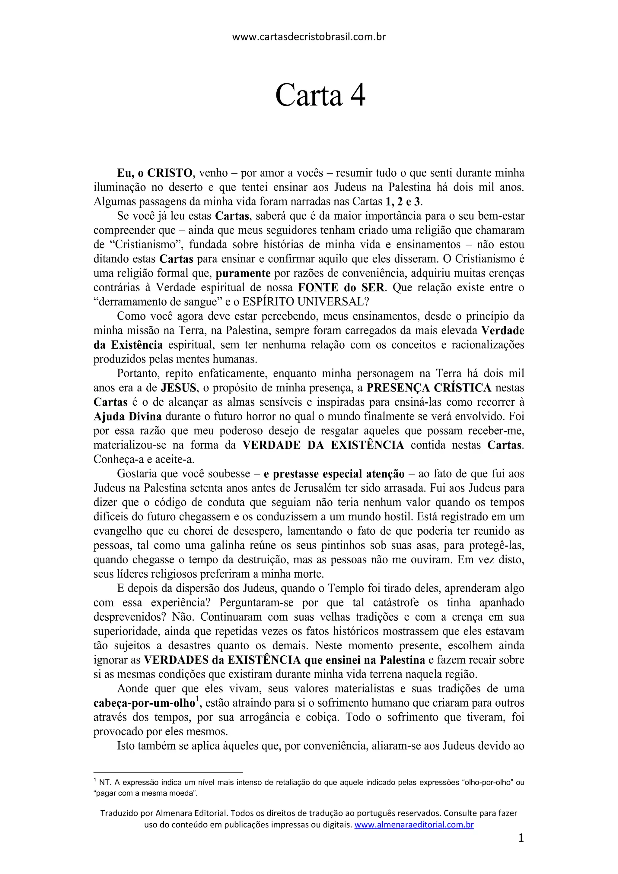 1) O autor da carta é o Cristo, que veio trazer ensinamentos espirituais para ajudar a humanidade a compreender a verdade sobre a existência.