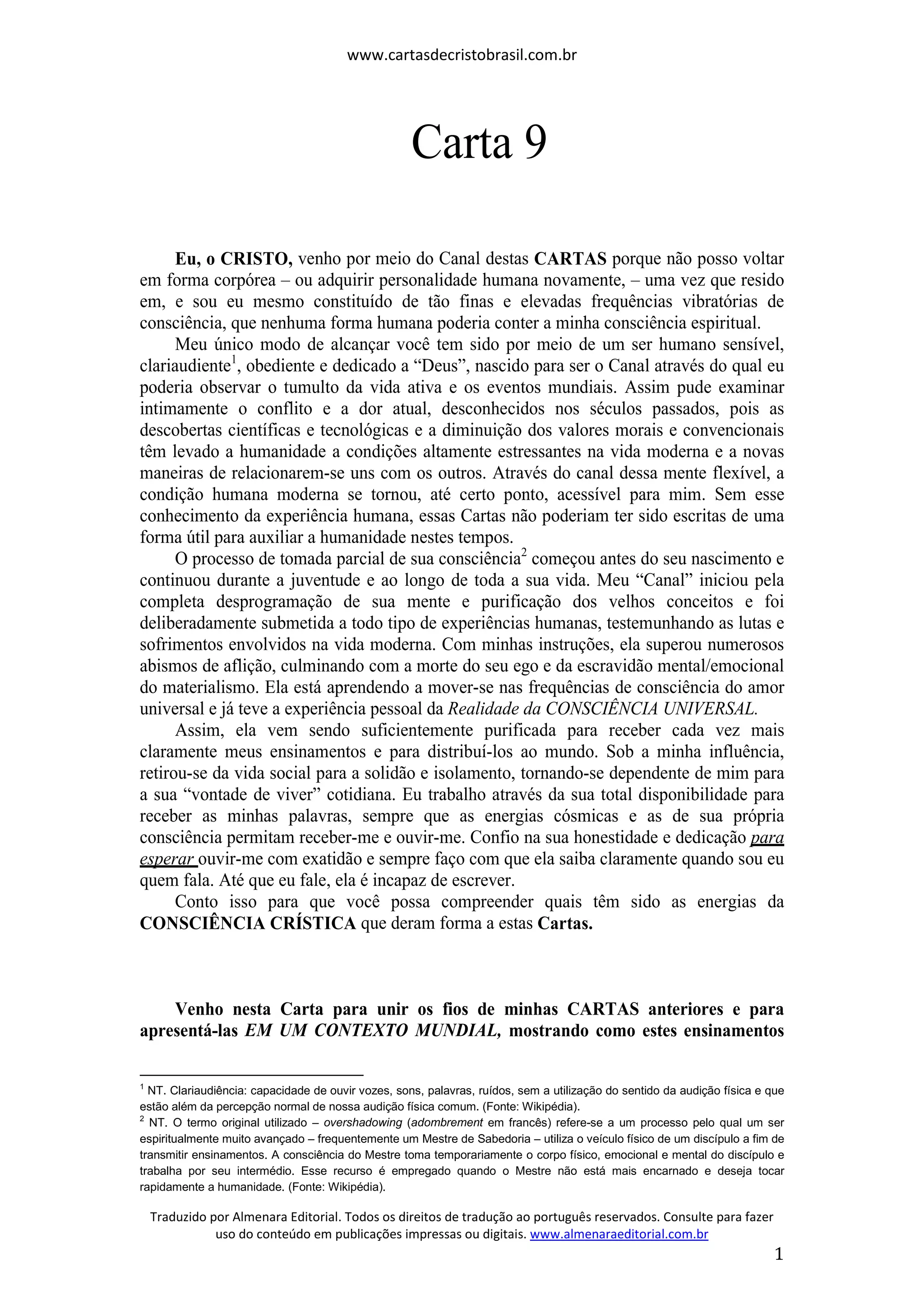 1) O documento descreve como Cristo está se comunicando através de cartas escritas por um canal humano sensível e obediente.