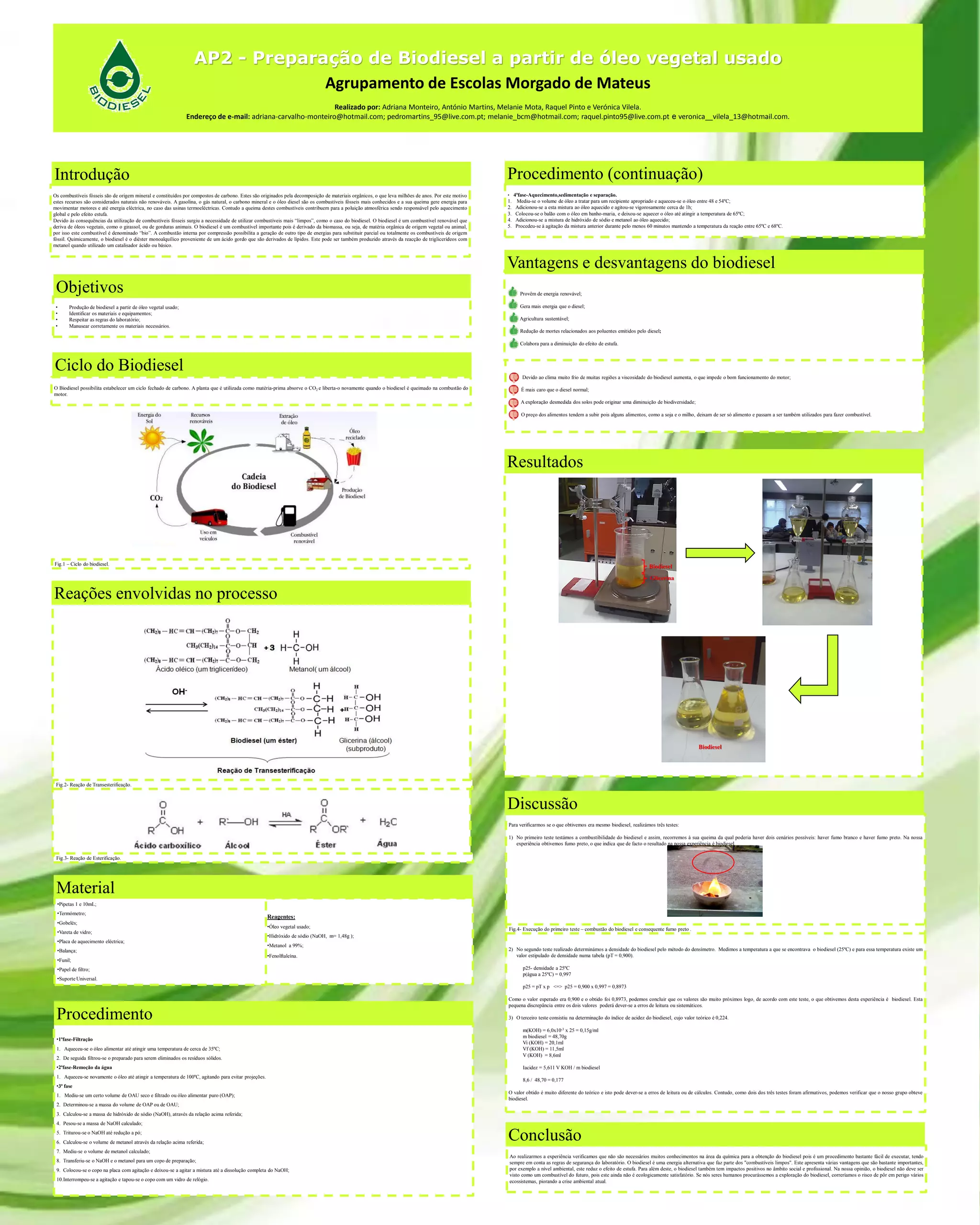 O documento descreve os procedimentos e materiais necessários para a produção de biodiesel a partir de óleo vegetal usado. Os principais passos incluem: 1) Filtragem e aquecimento do óleo, 2) Adição de hidróxido de sódio e metanol e agitação para transesterificação, 3) Aquecimento e separação das fases de biodiesel e glicerina.