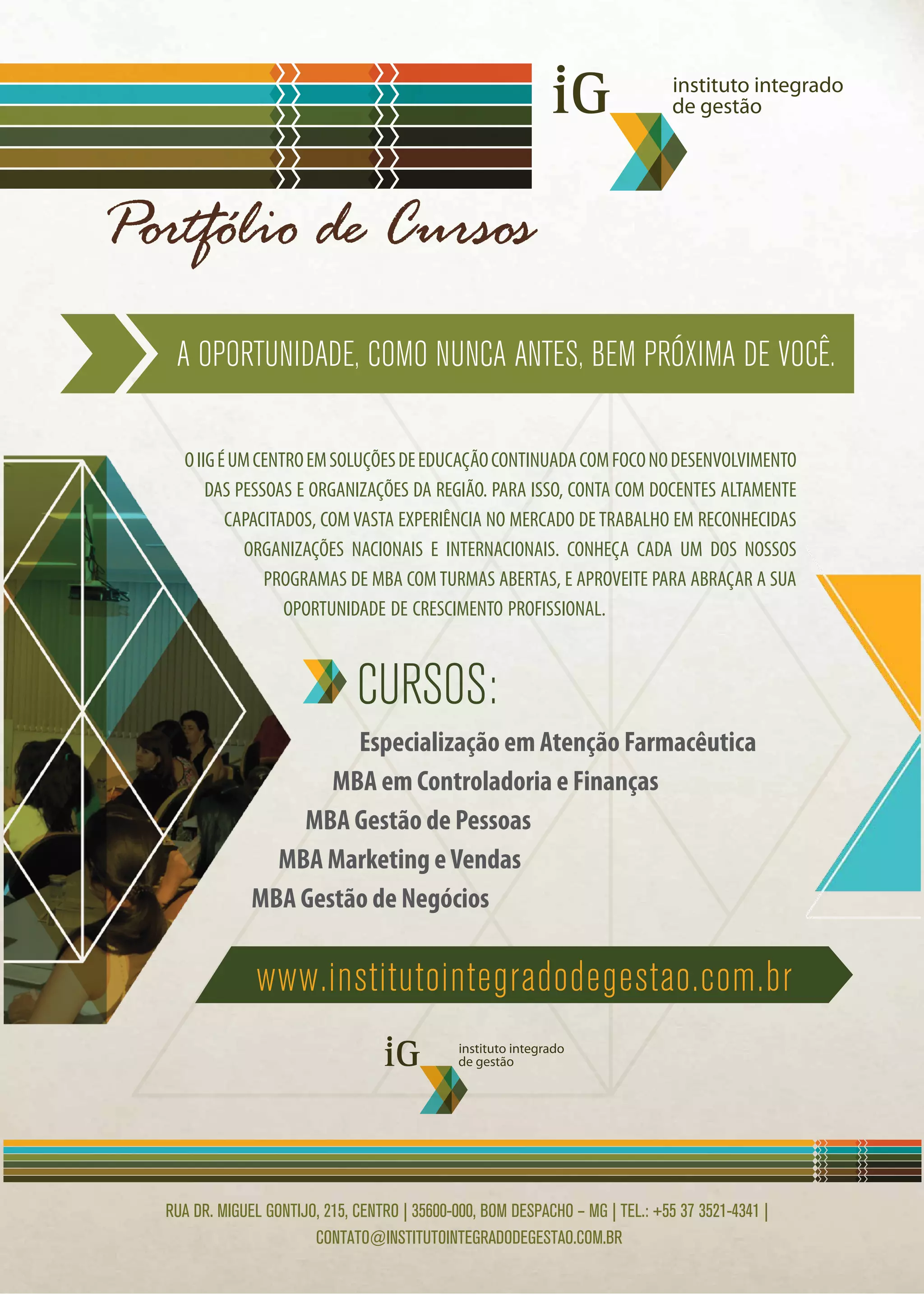 O IIG oferece um portfólio de cursos de educação continuada focados no desenvolvimento profissional, com docentes experientes do mercado. Os programas incluem especializações e MBAs em diversas áreas, como controladoria, gestão de pessoas e marketing. As turmas estão abertas e o IIG visa fomentar o crescimento pessoal e organizacional na região.