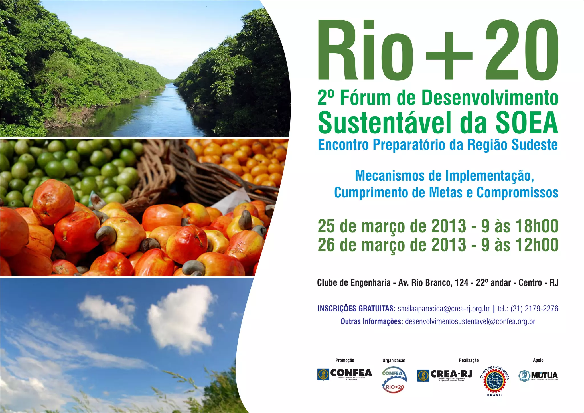 O documento anuncia um encontro preparatório regional para discutir a implementação dos acordos da Conferência Rio+20 sobre desenvolvimento sustentável. O evento ocorrerá nos dias 25 e 26 de março no Clube de Engenharia do Rio de Janeiro e contará com estudos de caso, palestras e debates sobre saneamento, agricultura urbana e cidades sustentáveis. O objetivo é receber contribuições para o capítulo sobre mecanismos de implementação dos temas e propostas homologados na Rio+20.