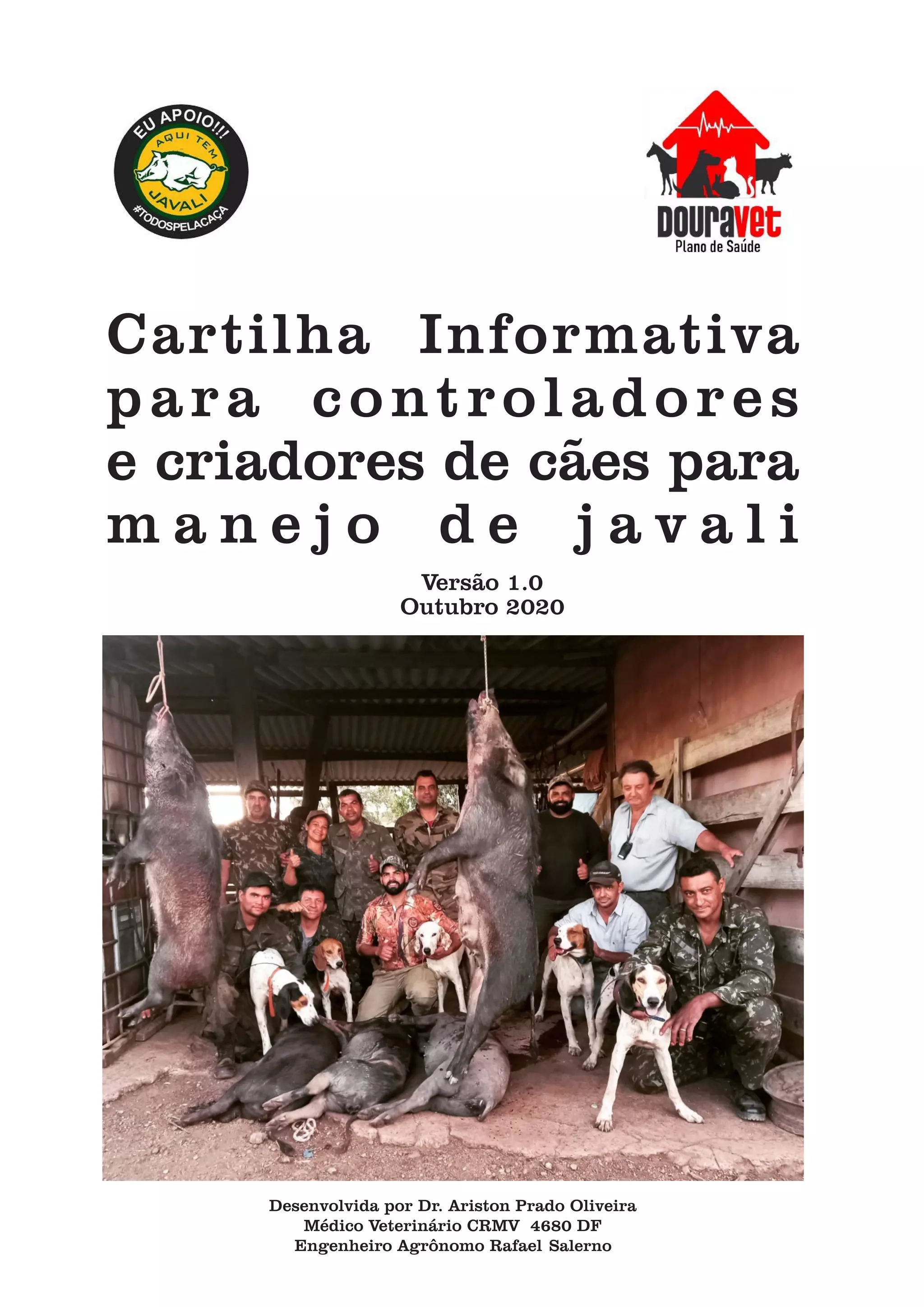 Cartilha de SUGESTÕES desenvolvida pelo Med. Vet. Ariston Prado CRMV 4680 e Eng. Agr. Rafael Salerno CREA/MG 04.0.0000094470 para criadores de cães e controladores proprietários de cães utilizados no controle de javali no Brasil