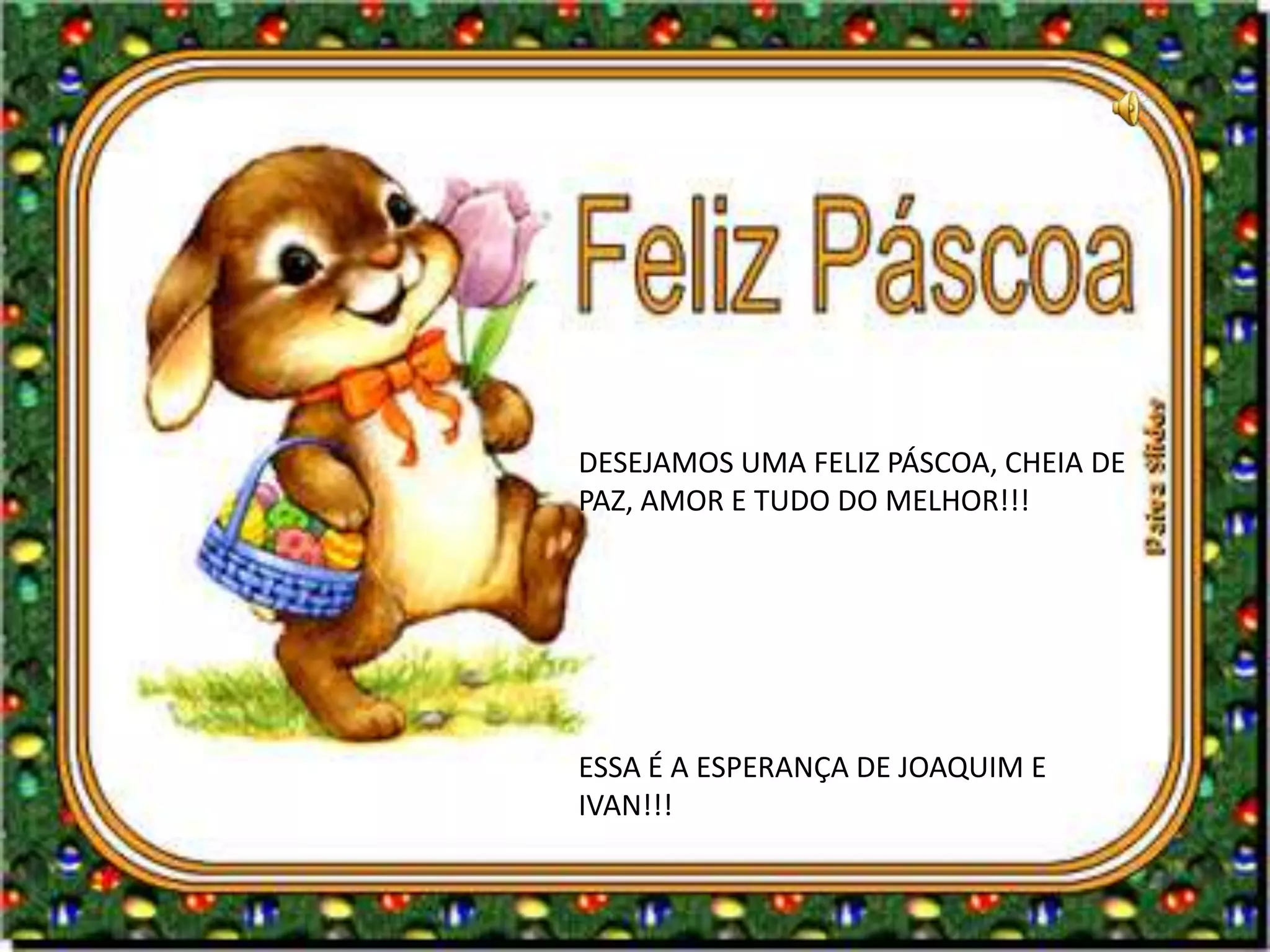 A mensagem deseja uma feliz Páscoa cheia de paz, amor e coisas boas. Joaquim e Ivan esperam que todos possam desfrutar dessa época com sentimentos positivos.