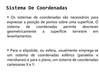 1) A cartografia é a arte de construir mapas para conhecer os limites de um território, baseando-se na aquisição de dados espaciais de uma área.