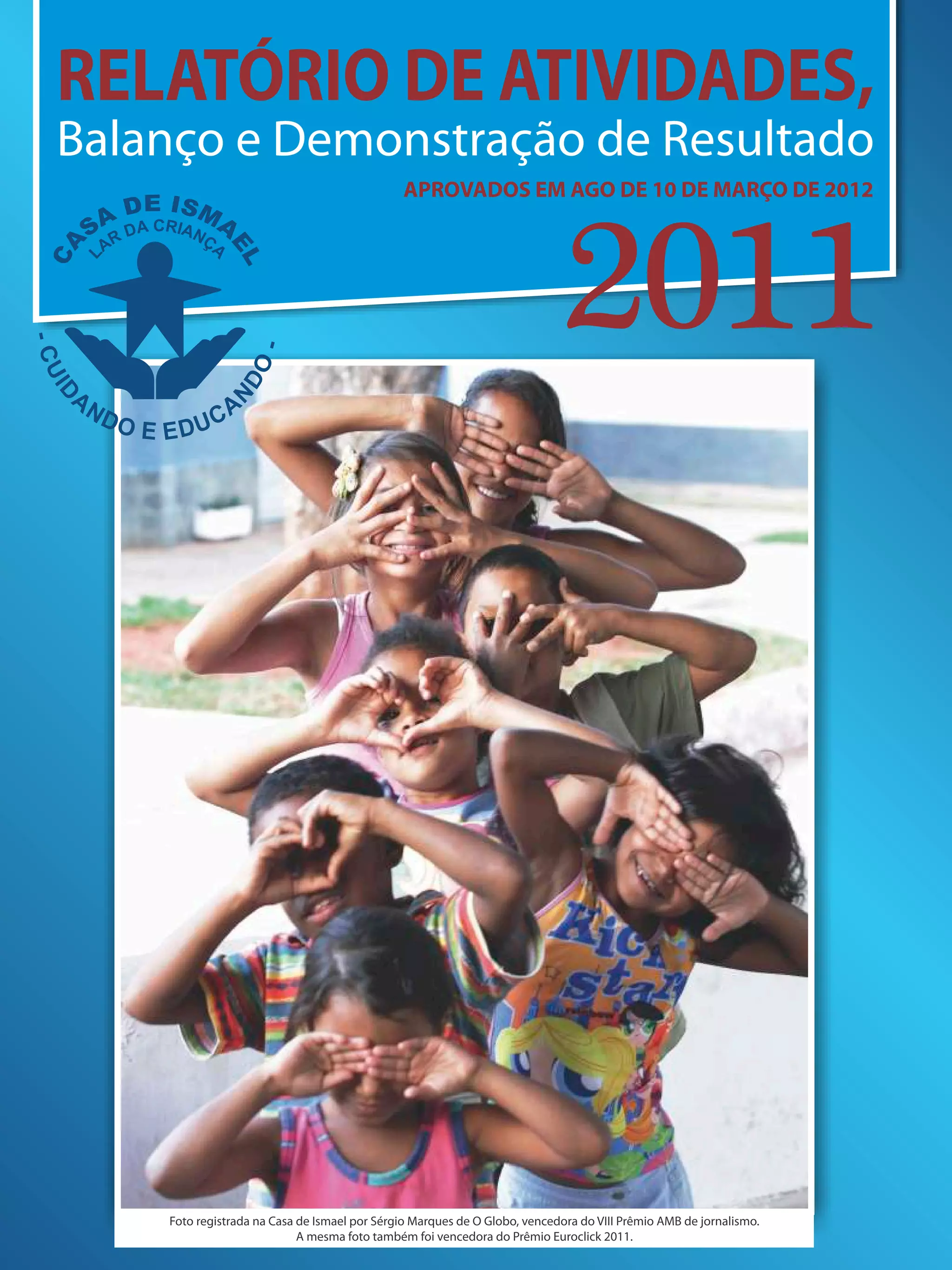 Este documento fornece um relatório anual de atividades da Casa de Ismael, uma organização sem fins lucrativos que presta serviços socioassistenciais e socioeducacionais para crianças e adolescentes em situação de vulnerabilidade no Distrito Federal. O relatório resume a infraestrutura, estrutura organizacional, finalidades e áreas de atuação da organização, incluindo assistência social, educação e eventos. Ele também apresenta informações financeiras como balanço patrimonial e demonstração de resultados do exercício de 2010.