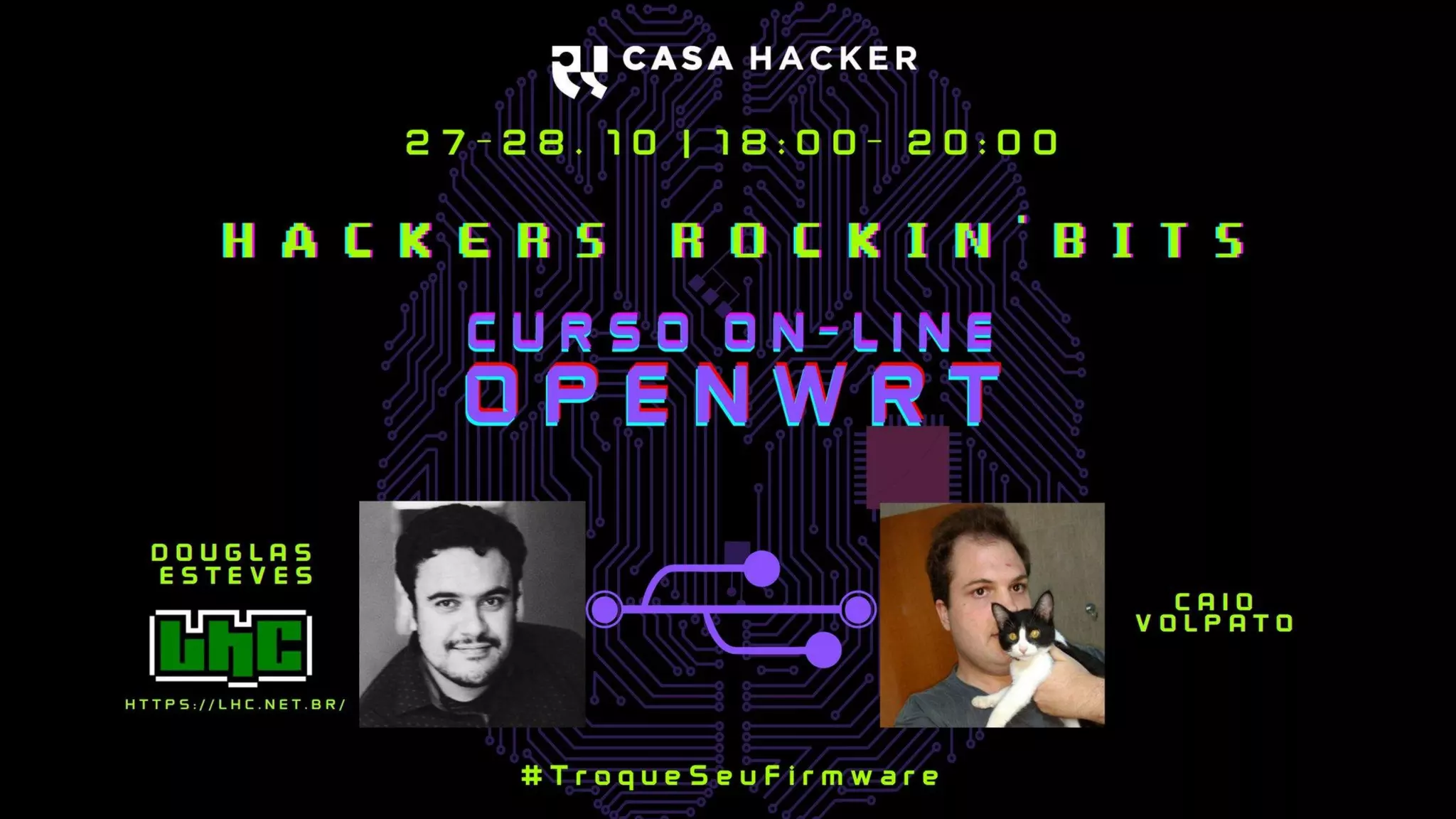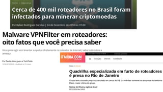 O documento apresenta informações sobre Douglas Esteves, Caio Volpato e as organizações Casa Hacker e Laboratório Hacker de Campinas. Também fornece detalhes sobre o firmware OpenWRT, como instalá-lo e customizá-lo em roteadores, e dicas de segurança como bloquear anúncios e usar DNS criptografado.