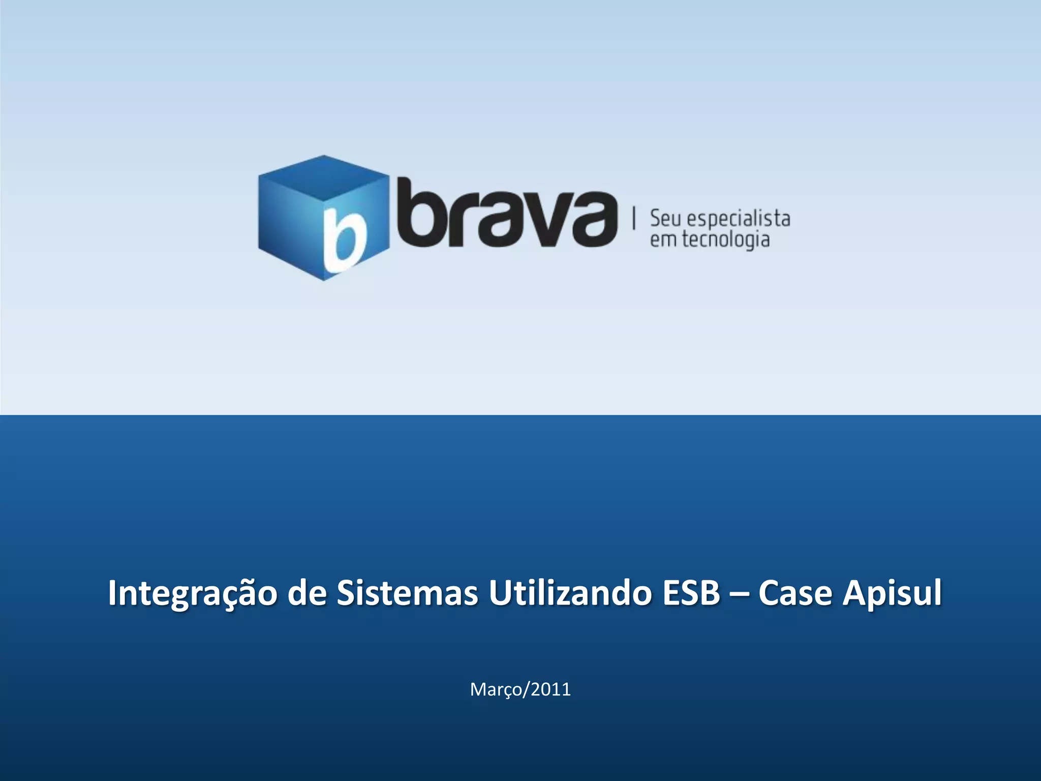 Este documento descreve a integração de sistemas da Apisul utilizando um ESB. Detalha os 8 sistemas envolvidos, as 20 integrações entre eles, e a arquitetura de integração implementada usando ferramentas como FuseESB, Camel e ActiveMQ. A integração envolveu mais de 4.000 horas de projeto e integra atualmente mais de 5.000 registros e 27.500 transações por mês.