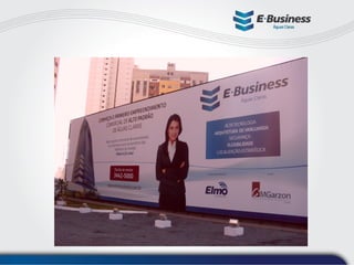 O e-business é um novo projeto da Elmo Engenharia em Águas Claras, DF, que visa lançar empreendimentos comerciais de alto padrão com tecnologia avançada. O objetivo é gerar expectativa nos moradores e consultores sobre o empreendimento, incentivando registros no site e a compra de salas comerciais. Durante a pré-venda, 95% do projeto foi vendido, destacando o sucesso da campanha de lançamento.