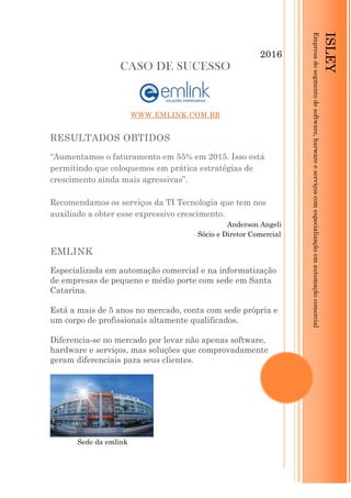 Empresadosegmentodesoftware,harwareeserviçoscomespecializaçãoemautomaçãocomercial](https://image.slidesharecdn.com/caseemlink2016-160201135248/85/Case-emlink-2016-1-320.jpg)