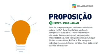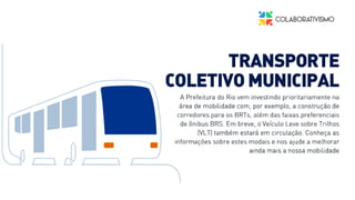 O documento discute iniciativas de tecnologia cívica (Civic Tech) que usam tecnologia para fortalecer a cidadania e melhorar serviços públicos, incluindo projetos de participação pública no Rio de Janeiro que visam informar, consultar, envolver e colaborar com a população na gestão municipal.
