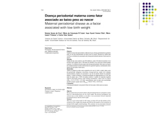 Este estudo caso-controle investigou a associação entre doença periodontal materna e baixo peso ao nascer. Os resultados mostraram que a doença periodontal foi diagnosticada em 57,8% das mães de bebês com baixo peso e 39,0% das mães de bebês com peso normal, indicando uma associação positiva. As mães com doença periodontal tinham o dobro de chance de ter bebês com baixo peso. Esta associação foi ainda maior entre mães com menor escolaridade.