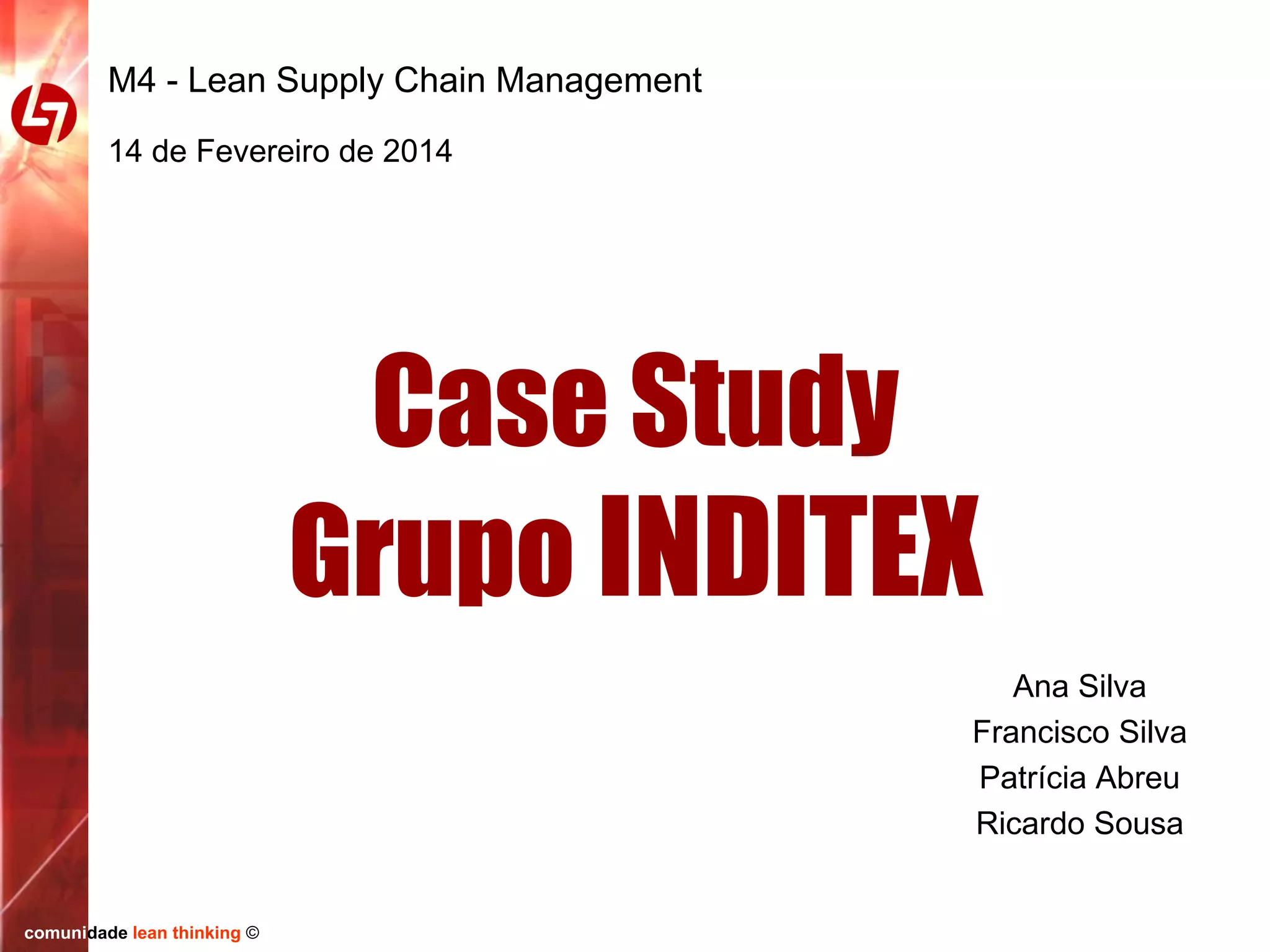 O documento apresenta o caso do grupo Inditex, com foco na marca Zara, destacando seu modelo de negócio de 'moda rápida a preços acessíveis'. A Zara adota uma cadeia logística ágil, com tempos de entrega de 24 a 48 horas e um sistema just in time, permitindo o lançamento de cerca de 10.000 novos produtos por ano. O sucesso do grupo é atribuído à sua capacidade de responder rapidamente às demandas do mercado e à forte integração entre design, produção e distribuição.
