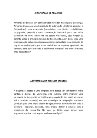 A Regência Sapatos é uma empresa que deseja ser competitiva. Hélio